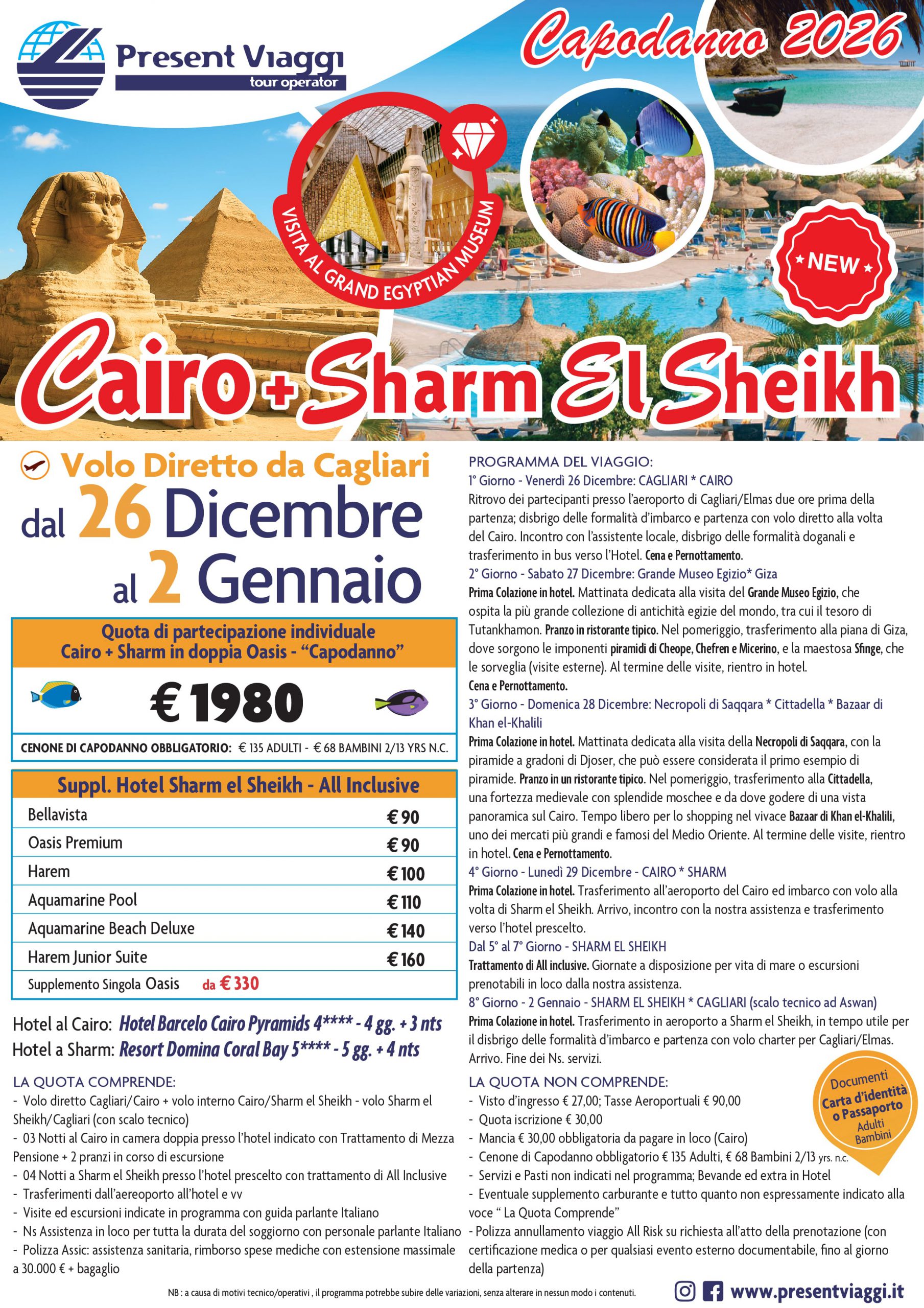 1° Giorno – Giovedì 26 Dicembre: CAGLIARI * LUXOR